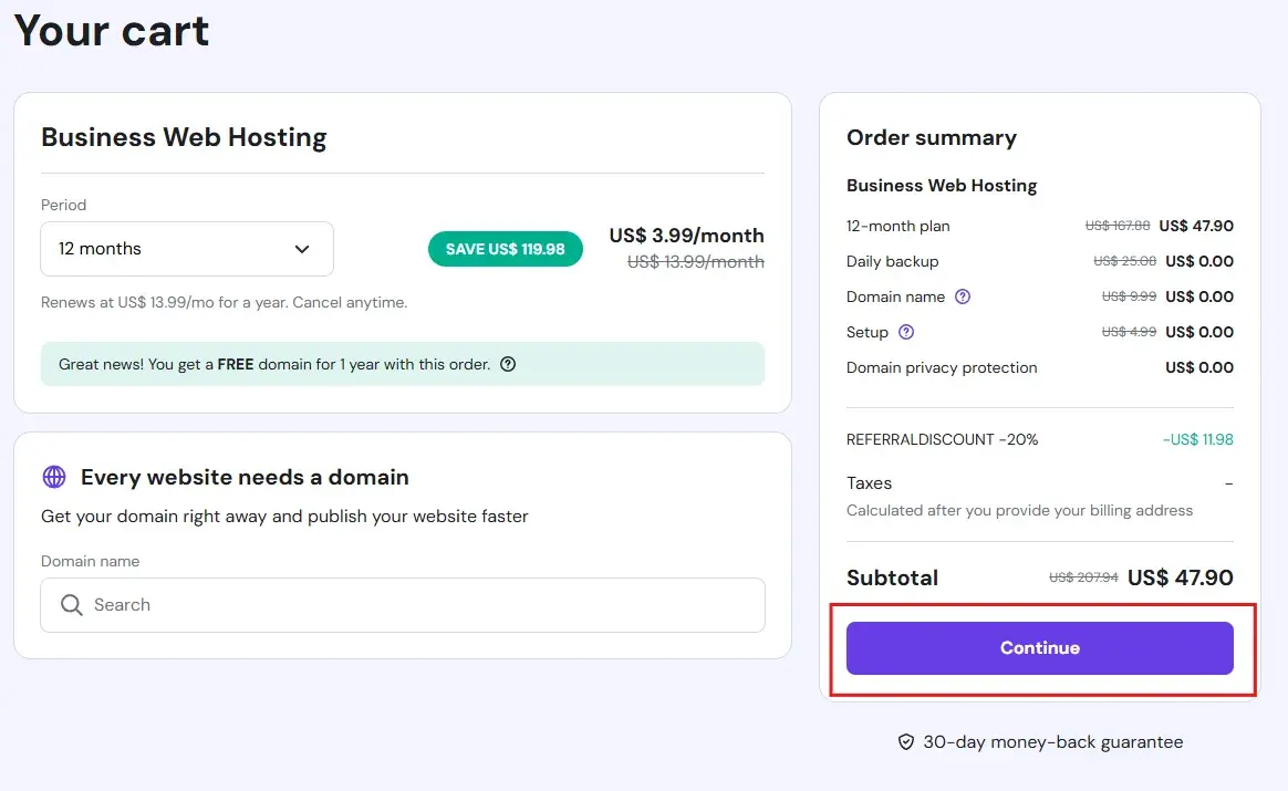 Done! Your hosting plan is ready, and you saved money without needing a code.