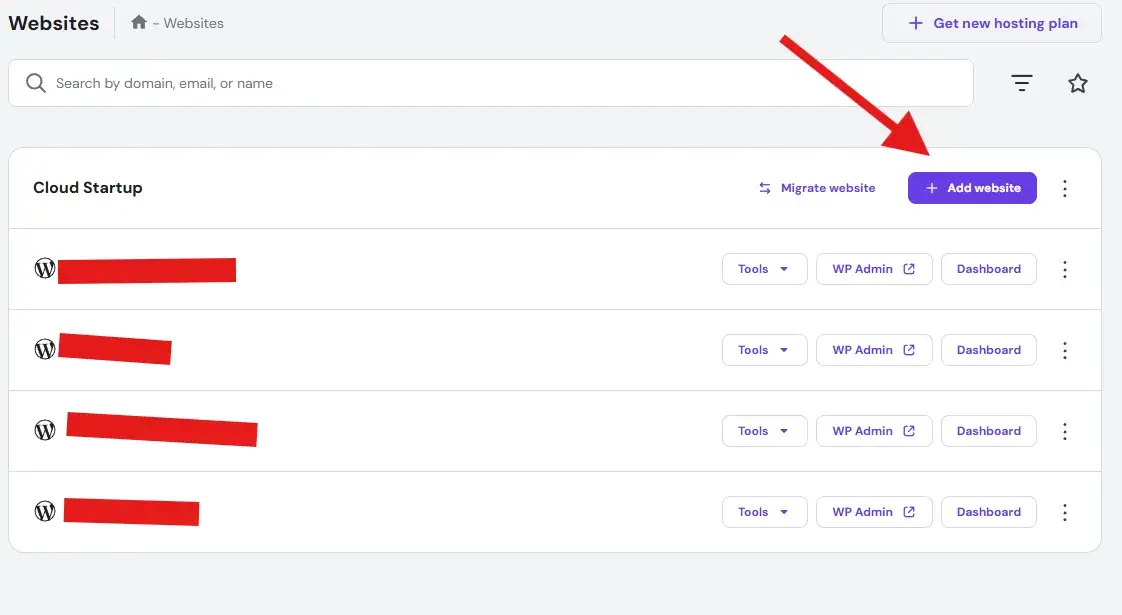 Add a second website for your portfolio via Websites → Create or migrate a website and repeat DNS steps for its domain.
